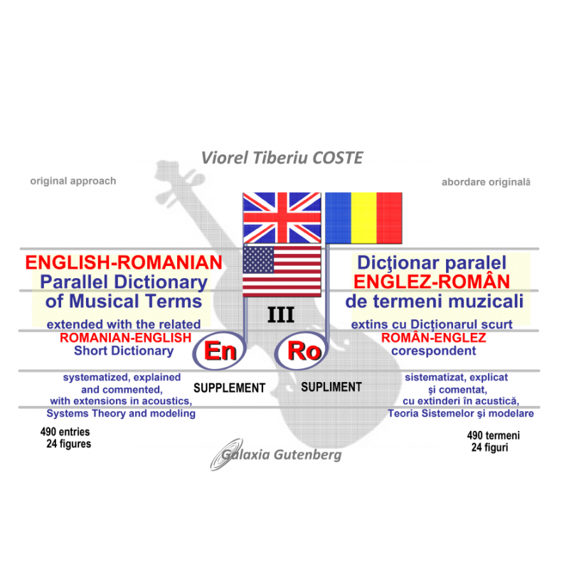Dicționar paralel ENGLEZ-ROMÂN de termeni muzicali extins cu Dicționarul scurt ROMÂN-ENGLEZ corespondent. ORIGINAL!, EXHAUSTIV!, SISTEMATIZAT!, ILUSTRAT!