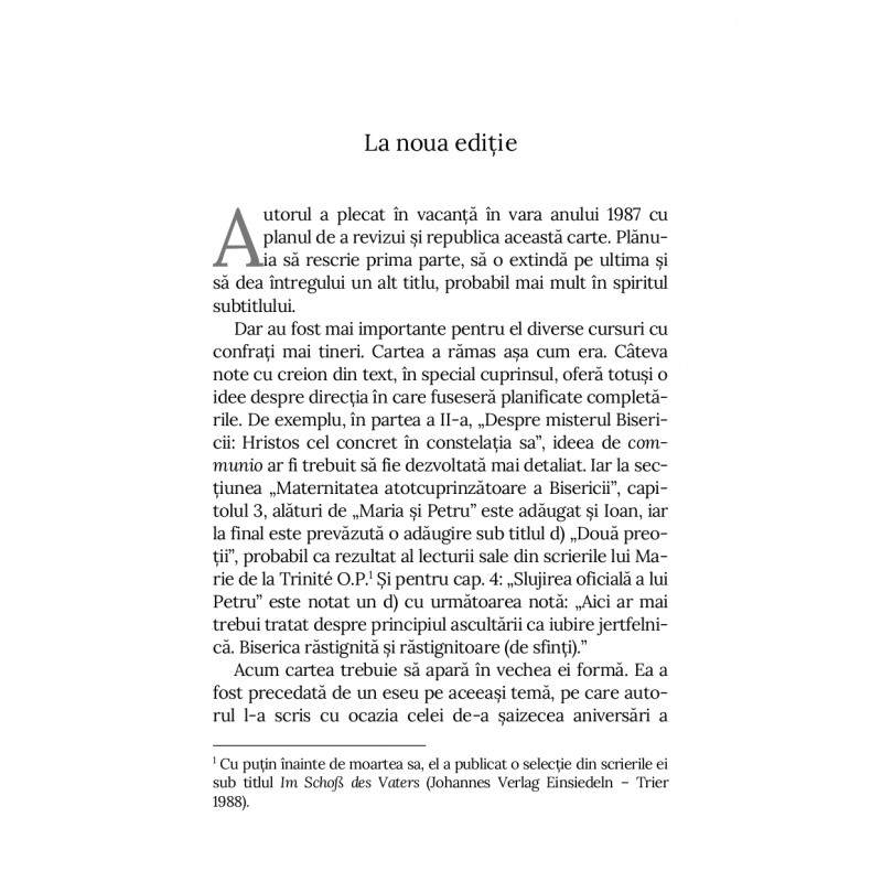 Cu claritate intelectuală şi spirit ecumenic, cartea analizează în profunzime modul în care papalitatea ar putea fi concepută nu ca obstacol, ci ca punct de convergenţă pentru unitatea Bisericii. Este o invitație la dialog onest şi curajos între tradiții, apelând la memoria comună a creştinismului şi la deschiderea către un viitor al reconcilierii.
